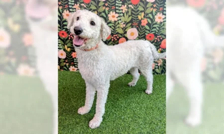 Cuddly poodle mix Clementine makes a great couch companion