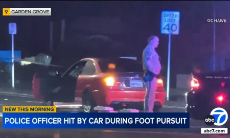 Garden Grove police officer fighting for his life after being struck by car during pursuit. The suspect remains at large, sparking...