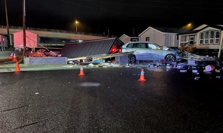 Christmas Eve crash injures four, wrecks coffee stand in Gorst